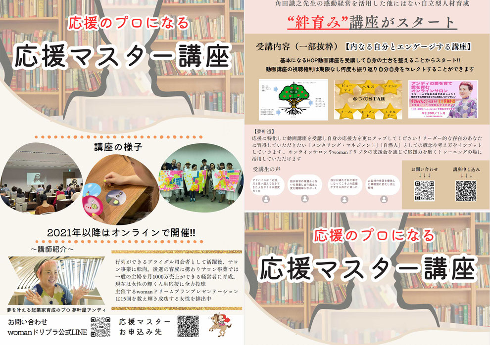 アンディは言います「女で生まれ(女)→良い子になり(娘)→家がついて(嫁)に、女が古くなり(姑)→波打つ(婆)になる」と。女性の人生は、ライフイベントにより変化していきます。どうか、その流れに翻弄されるのではなく、自分で自分の人生を舵取りできますように。そのためには、「夢」という羅針盤が必要です。その夢は、壮大なものでも、家族のためでも、どんな夢でも良いのです。自分の意思で過ごす時、人は笑顔になります!夢に向かって歩くと楽(らく)なことばかりではないかもしれません、でも、そこには悔いのない人生が待っているとおもいます!一緒に人生を楽しみましょう!